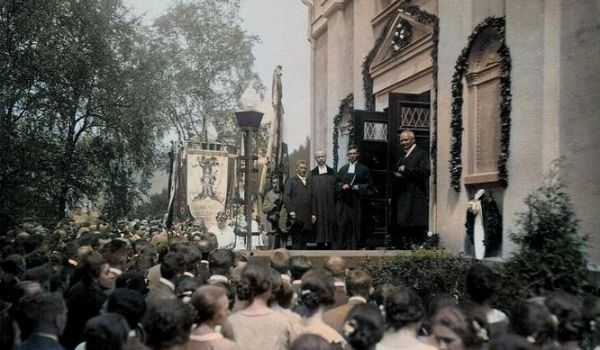 Ein Foto des Einweihungsgottesdienstes der Kapelle Haselbach vom 26. Juli 1925. Nach einer umfassenden Sanierung erstrahlt sie nun in neuem Glanz. Wer die 100-jährige Haselbacher Schönheit bewundern möchte, hat am Kirchweih-Wochenende vom 25. bis 27. Juli 2025 ausführlich Gelegenheit dazu. Foto: Archiv