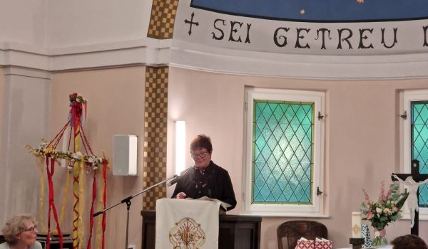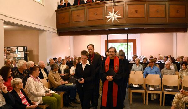 Zahlreiche Gäste kirchlicher und kommunaler Institutionen sowie aus der Bürgerschaft und dem Vereinswesen nahmen am Festgottesdienst mit Pfarrer Jörg Zech teil. Musikalisch wurde die Veranstaltung u. a. durch ein Alphornduo, den Chor „Belcanto“ sowie die Singegruppe des Stadtteilzentrums „Wolke 14“ begleitet. Als standesgemäße Begleitung für die betagte Dame fungierte zum Fest Otto Müller. Als einjähriger Junge wurde er im Mai 1926 in der damals taufrischen Kapelle getauft und zählt nun mittlerweile 101 Lenze. Er durfte die besondere „Geburtstagstorte“ für die Kapelle anschneiden.
