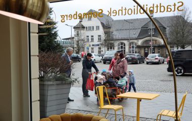 Sitzplätze draußen und drinnen, ein Kaffeeautomat, eine helle, freundliche Atmosphäre zum Verweilen, mehr als 30 aktuelle Zeitschriften im Regal und rundherum Bücher, Spiele und noch viel mehr – das erwartet Besucher in der wiedereröffneten Stadtbibliothek Sonneberg. „Das ist echt schön geworden“, resümiert eine Besucherin beim Rundumblick am Eröffnungstag.