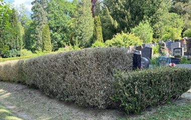 Schon großen Schaden hat der Buchsbaumzünsler auf dem Hauptfriedhof Sonneberg angerichtet. Fotos: Stadt Sonneberg/D. Pechtold-Wicklein -