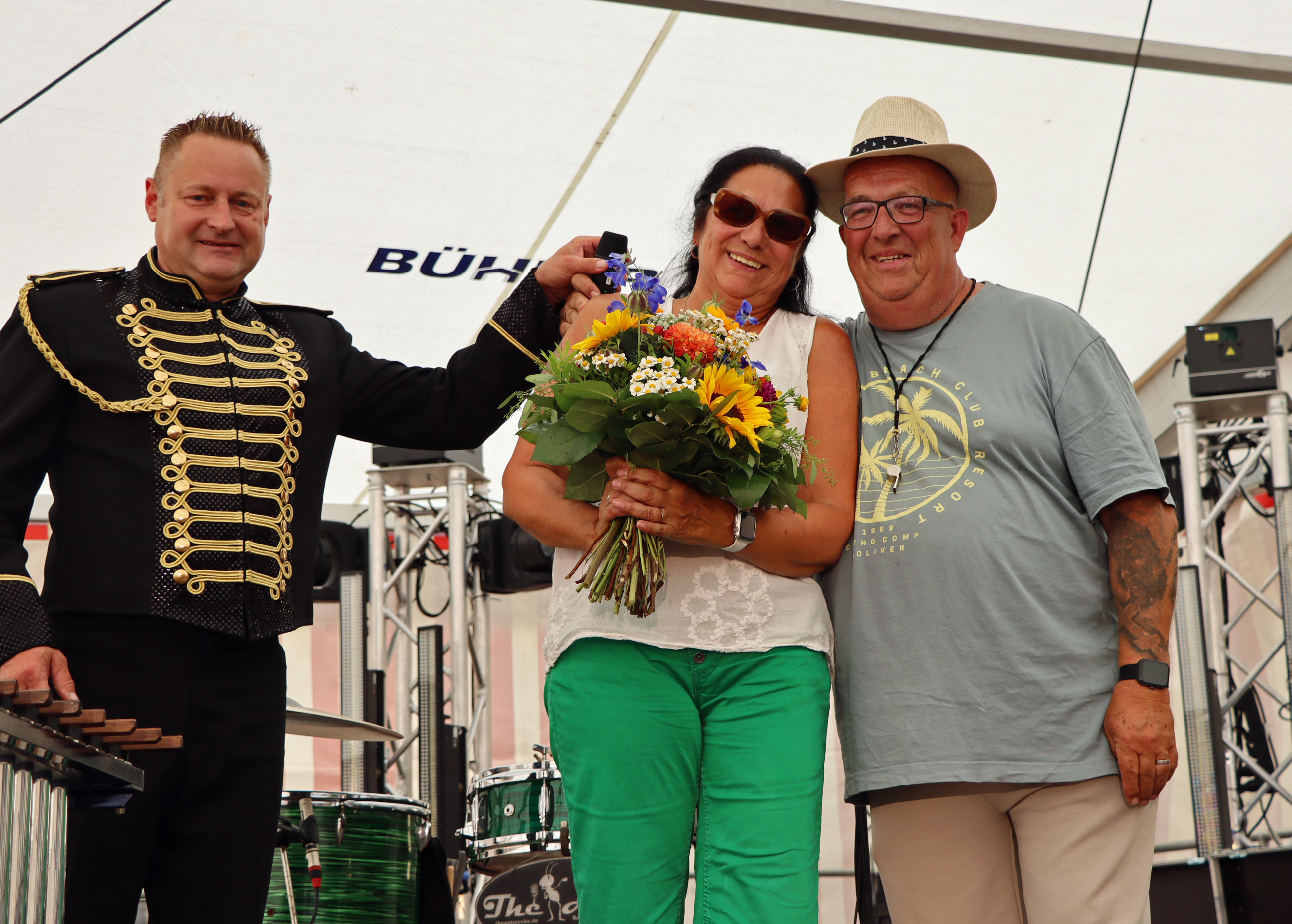 "Das alles hier werd' ich vermissen", gibt sie mit Blick auf den Schießhausplatz, auf seine Buden, Fahrgeschäfte und Besucher zu. Ein herzliches Dankeschön bekam sie stellvertretend für alle Schausteller von René Warkus und Andreas Müller überreicht - dafür, dass sie so viele Jahre alle herzlich empfangen und begleitet hat. Blumenstrauß und Rührung inklusive! Wir sagen ebenfalls Danke dafür!