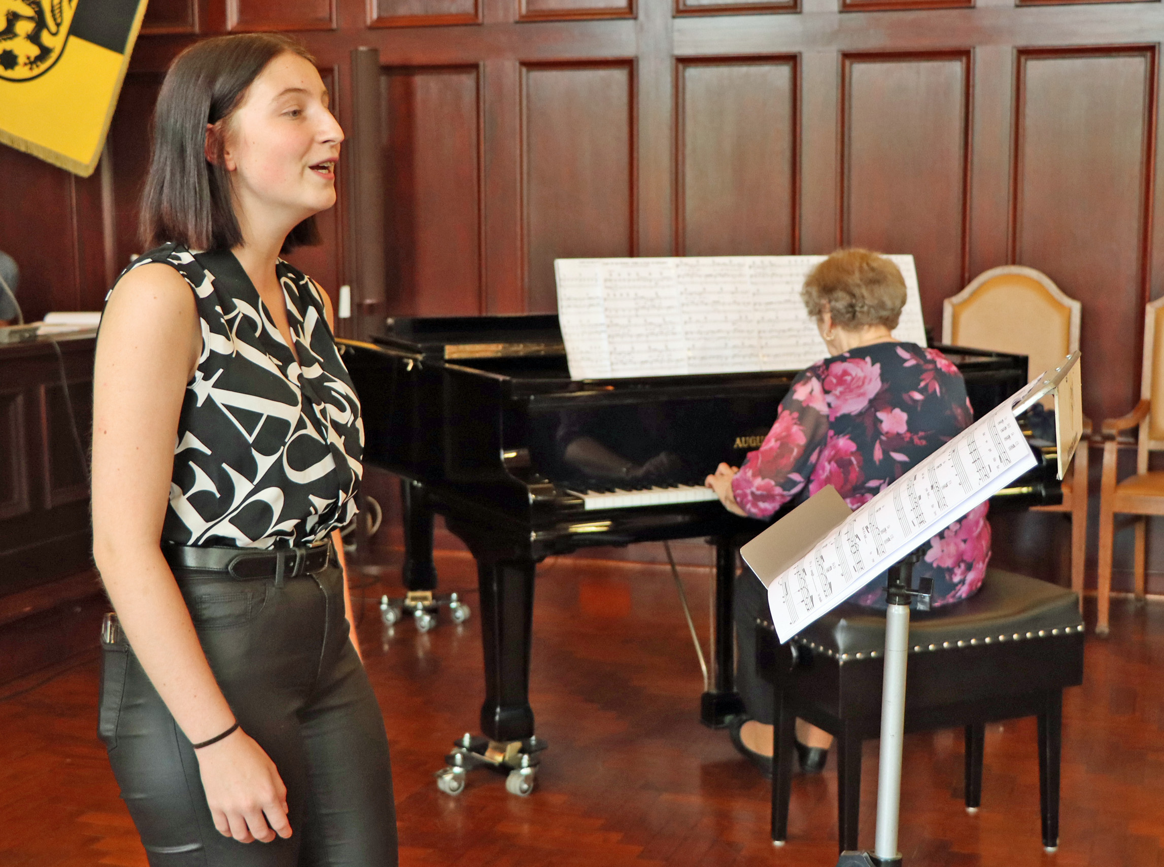 In diese außergewöhnliche Sitzung stimmten Annerose Röder am Flügel und Julia Meusel mit ihrem eindrucksvollen Gesang ein. „Can you feel the love tonight“, ein passender Titel, denn für die folgenden Ehrungen verdienter und langjähriger Stadträte empfindet Bürgermeister Dr. Heiko Voigt eine große Dankbarkeit.