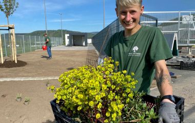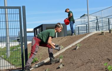 Mit rundherum Grün und einer schönen Pflanzenmischung bekommt das Areal oberhalb des Stadions den letzten Schliff. -