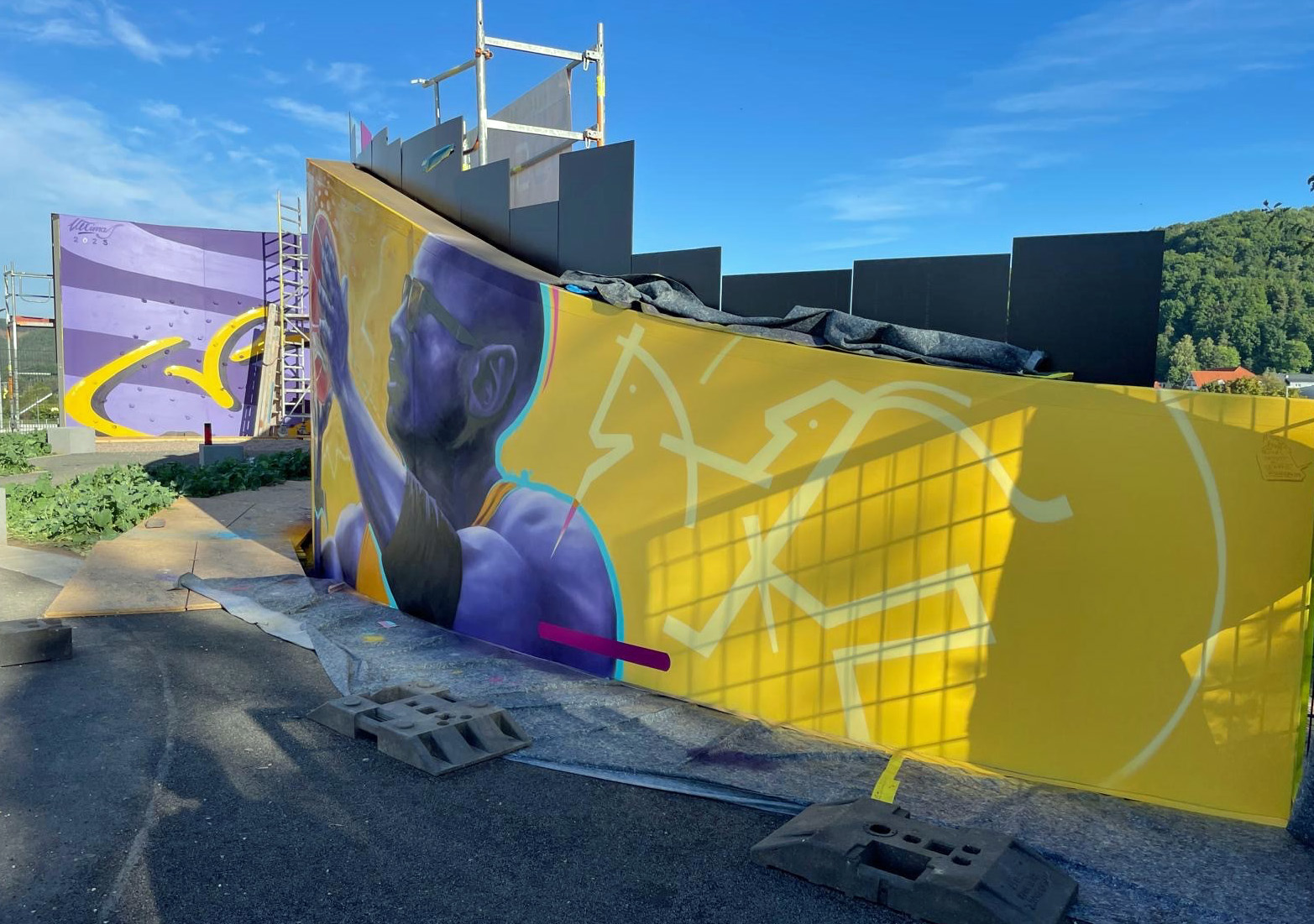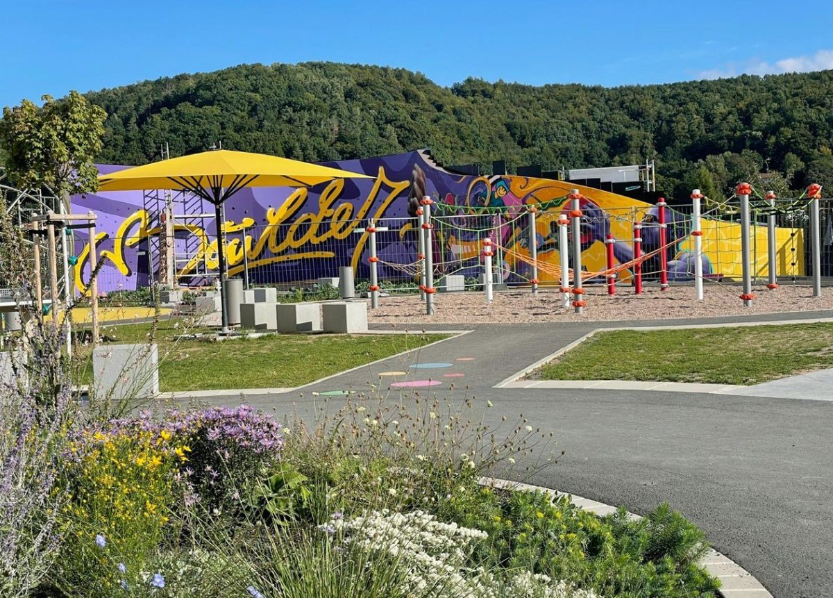 Die Stadt Sonneberg bedankt sich herzlich beim Team aus Malerfirma und professionellen Sprayern, die das Projekt von der Planung bis zur Umsetzung begleitet und mit viel Know-how umgesetzt haben. Dank ihres Einsatzes ist ein Kunstwerk entstanden, das den Charakter von AREAl26 unterstreicht und für lange Zeit Freude bereiten soll. Die Boulderwand wird dann zu einem späteren Zeitpunkt zum Klettern freigegeben, wenn alle Bauarbeiten rund um die große Betonwand erledigt sind.