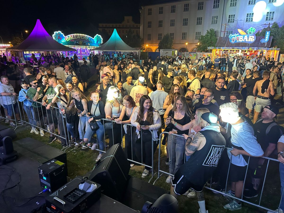Der Samstag stand ganz im Zeichen der Kult-Hits: Zur 90er/2000er-Party strömten ab 20 Uhr die Massen aufs Gelände – es bildeten sich Schlangen am Einlass. Am Ende tanzten 1500 Gäste unter freiem Himmel, untermalt von einem Feuerwerk.