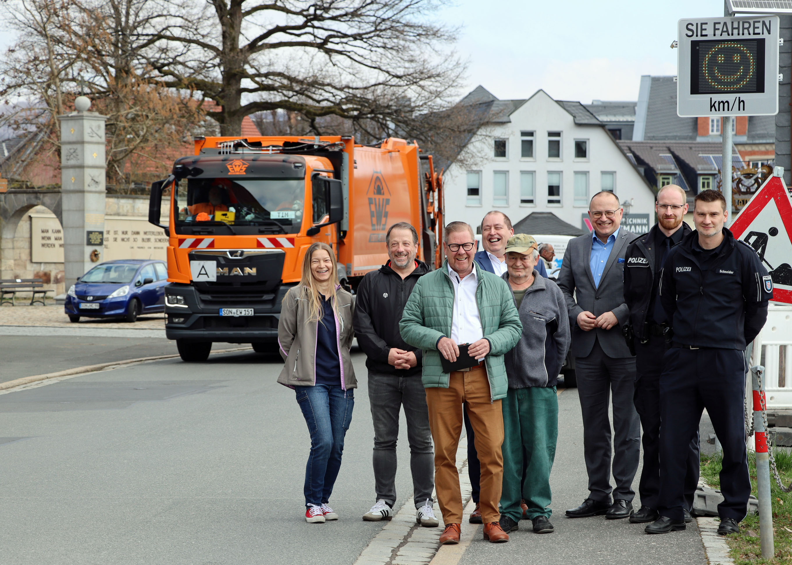 Gemeinsam mit der Polizeiinspektion Sonneberg wurde der Standort bestimmt und vom Bauhof der Stadt für die Installation vorbereitet. Nun wird geschaut, ob sich die neue Anzeigetafel auch in der Praxis bewährt und wirklich einen Effekt auf die Geschwindigkeit in der Ortslage hat.