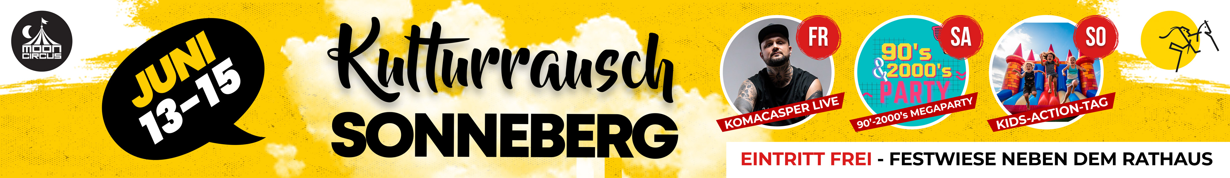 Das dreitägige Event hat sich in nur wenigen Jahren zu einem echten Publikumsliebling entwickelt. Mit einem breit gefächerten Programm lädt KulturRausch dazu ein, gemeinsam zu feiern, zu tanzen, sich zu erinnern – oder einfach Zeit mit Familie und Freunden zu verbringen. Veranstaltet wird das Festival von der Stadt Sonneberg in Kooperation mit der Eventagentur Moon Circus aus Hildburghausen, die sich mit dem überregional bekannten Heidewitzka Festival einen Namen gemacht hat. Ihre kreative Handschrift prägt nun auch das Sonneberger Open-Air: ein Programm voller Lebensfreude, das alle Altersgruppen anspricht und die Stadt zum gemeinsamen Erlebnisraum macht.