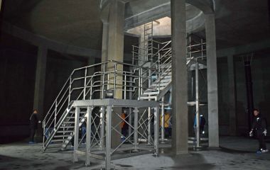 Eine Sanierung war also zwingend erforderlich. Die Arbeiten begannen im August 2024 und umfassten insgesamt drei Bauabschnitte. Zum einen die Außenabdichtung der Behälterdecke. Hier wurde eine DVGW (Deutscher Verein des Gas- und Wasserfaches) gerechte Abdichtung, Isolierung und Überdeckung der Betondecke realisiert. Darüber hinaus wurden sowohl die Einstiegshäuser als auch die Schieberkammer komplett überholt. Und durch die Errichtung des Einstiegsturmes aus Edelstahl kann der Hochbehälter Eichberg jetzt auch sicher betreten werden. Zum anderen umfassten die Bauarbeiten die betontechnische Sanierung der Wasserkammern. Hierfür wurden die alten PVC-Folien entfernt, alle Betonflächen wurden sandbestrahlt und mit einer zweilagigen Spezialbeschichtung verkleidet. Ferner wird auf dem Areal noch eine Photovoltaikanlage installiert, was zukünftig zu Verringerung der Stromkosten beiträgt.