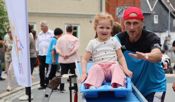 Selbstverständlich fehlten auch die beliebten Klassiker eines Kinderfestes nicht: Hüpfburgen, Trampoline, Kinderschminken, Stelzenläufer und natürlich Eisstände sorgten für fröhliche Gesichter. Für das musikalische und kulturelle Rahmenprogramm auf der Bühne sorgte Torsten Donau als DJ und Moderator. Die Musikschule des Landkreises Sonneberg, die Tanzgruppe „Little Linder“ und die Kampfkunstvorführung der Ronin Thais sorgten für ein unterhaltsames Programm, das den Nachmittag kurzweilig gestaltete.