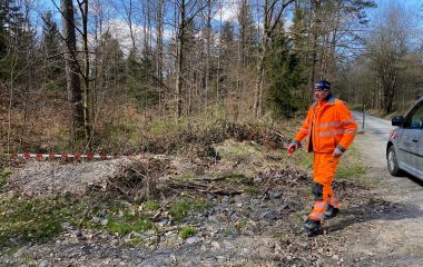 Damit am kommenden Donnerstag, 10. April, die turnusmäßige Leerung der Müllbehälter wie gewohnt stattfinden kann, musste also schnell eine Lösung her. Diese haben sich nach einem Hinweis des Landratsamtes Sonneberg schnell und unkonventionell das Bauamt der Stadt Sonneberg gemeinsam dem Thüringen Forst überlegt. „Obwohl wir eigentlich gar nicht für die Müllabfuhr verantwortlich sind“, macht Bauamtsleiter Holger Scheler aufmerksam.