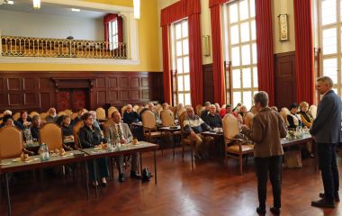 Auf Einladung des Sonneberger Seniorenbeirates und dessen Vorsitzender Johanna Hammerschmidt kamen zunächst die knapp 35 Frauen und Männer aus Saalfeld, Rudolstadt, Bad Blankenburg, Hildburghausen, Schleusingen und Sömmerda im Rathaussaal zusammen. Begrüßt wurden sie unter anderem durch den Hausherrn, Bürgermeister Dr. Heiko Voigt und passend zur Spielzeugstadt durch einen kleinen Stofftier-Löwen. Und auch die Thüringer Vorsitzende der Arbeitsgruppe Seniorenbeiräte, Christine Wichert, hieß die Senioren herzlich willkommen.