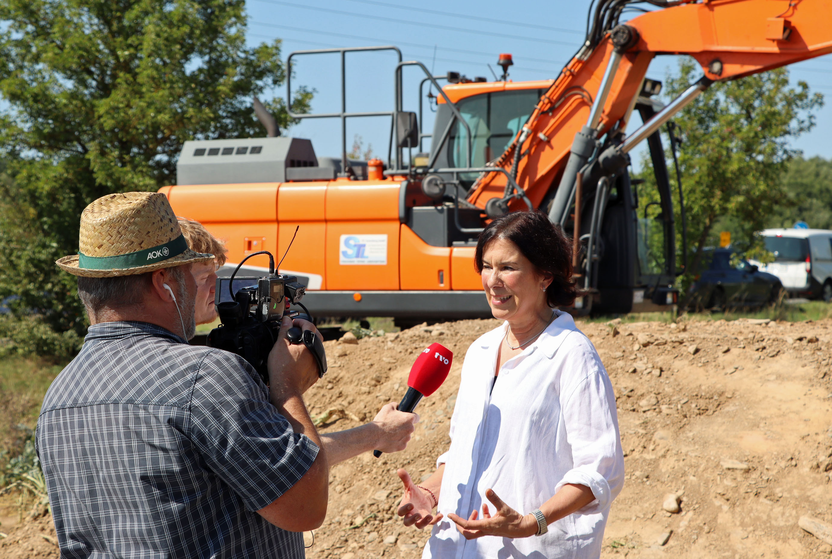 Mit einem besonderen Spatenstich, nämlich mit der Baggerschaufel durch die Thüringer Ministerin für Wirtschaft, Landwirtschaft und Ländlichen Raum, hat die Stadt Sonneberg am Dienstag, 12. August 2025 den symbolischen Auftakt für den ersten Bauabschnitt des neuen Industriegebiets Sonneberg-Süd gesetzt.
