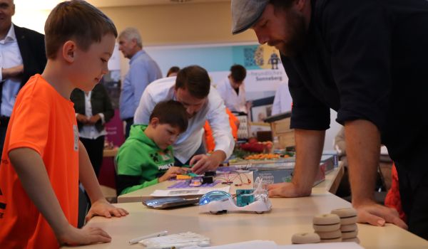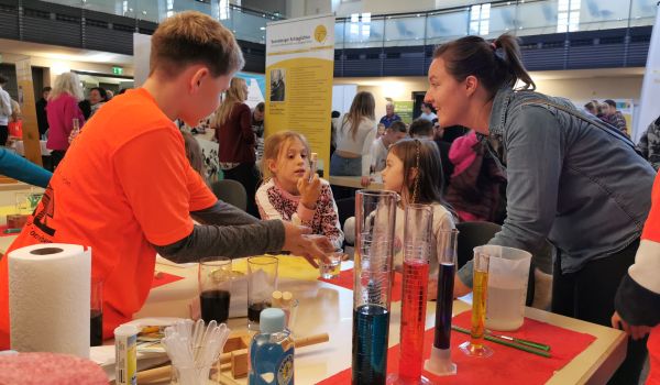 Einen ganzen Nachmittag lang konnten Mädchen und Jungen nach Herzenslust experimentieren, analysieren, malen, basteln, knobeln, spielen, am Glücksrad drehen, Astronomie und Robotik live erleben oder einfach nur staunen. Alle Akteure, die sich mit den Themen Mathematik, Informatik, Naturwissenschaft und Technik beschäftigen, sind eigens dafür zusammengekommen. Mit dabei waren die Schulen, Kitas, Museen, Institutionen, Vereine, Bildungsträger, Stiftungen und Forschungseinrichtungen, die natürlich untereinander kräftig netzwerkten. Und so durfte vom klassischen Schach- und Klemmbaustein-Spiel bis zum Konstruktionsbaukasten, programmierbaren Roboter, der mobilen 3D-Druck-Maschine, dem Mini-Windrad und dem Teleskop nichts aus dem MINT-Kanon fehlen.
