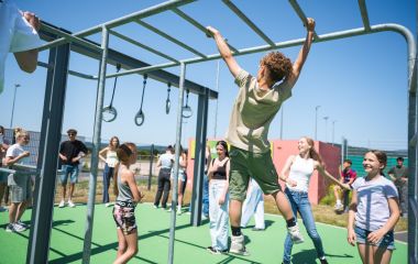 - eine Slackline, Kletternetze, Klimmzugstangen