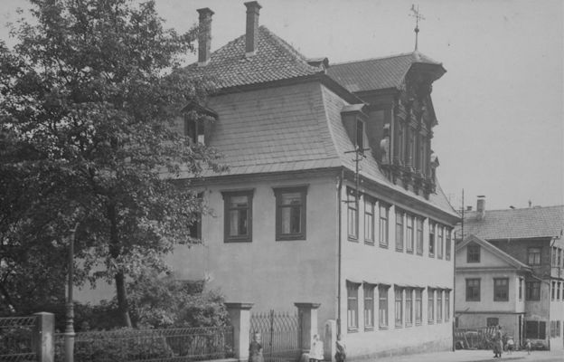 Dieses sogenannte Schottenhaus ist ein altes Rittergut und gehörte im 14. Jahrhundert der Familie Schott von Schottenstein, welche einem alten fränkischen Adelsgeschlecht entstammte. In dem Gebäude war zwischen 1872 und 1903 die Gewerbeschule, später das Realgymnasium untergebracht. Die Einrichtung bildete in ihren ersten Jahren noch den Nachwuchs in der Spielwarenindustrie aus, verstand sich nach Gründung der Industrieschule 1883 ausschließlich als gymnasiale Schule und wurde später als Amtsgebäude genutzt. Im Keller des Hauses befindet sich die „Cella Antiqua“, im Volksmund „Mönchskeller“ genannt, möglicherweise sogar eine fränkische Missions- und Taufstätte.
