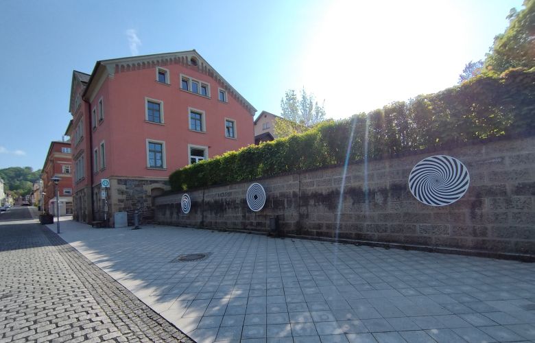 Direkt hinter der großen Mauer mit der bunten Drehwand und den Kreiseln befindet sich der Kindergarten mit dem Namen „Spatzennest“. Hier findest du ein paar Informationen: