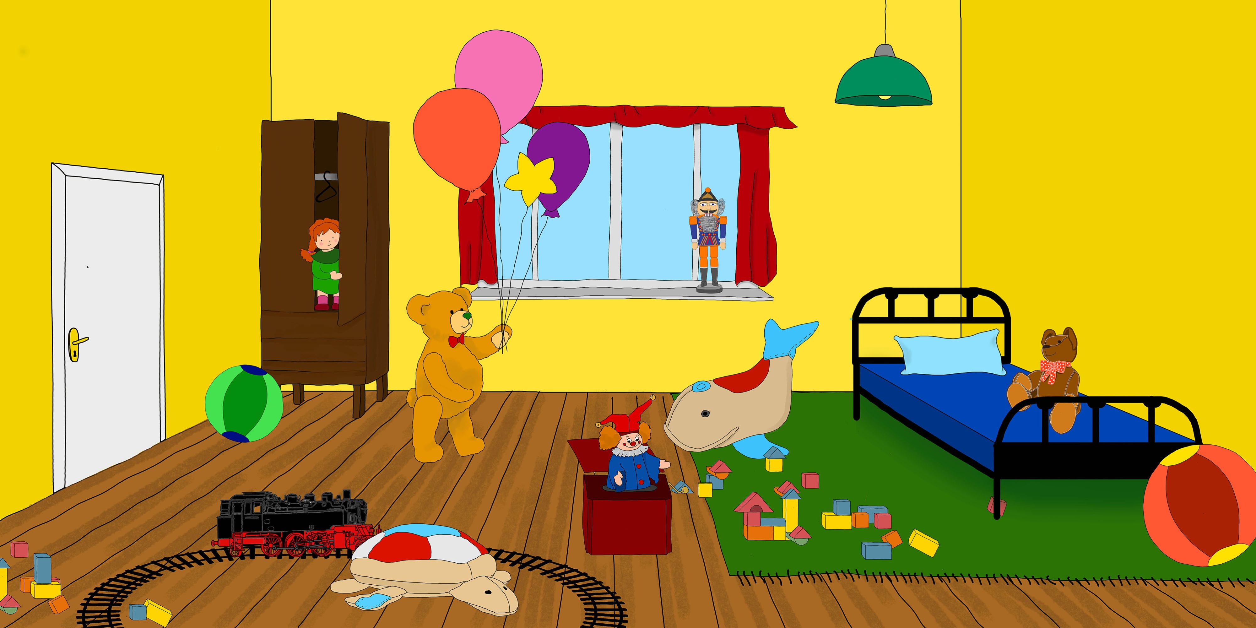 Schaut euch dieses Kinderzimmer an! Hier wimmelt es nur so von Sonneberger Spielzeug – und ihr könnt mittendrin sein! Mit der drehbaren Bilderwand zaubert ihr Tag oder Nacht ins Kinderzimmer und könnt die Szene verändern.
