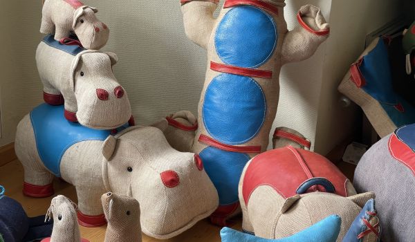 Was sieht denn hier aus wie ein übergroßer Fahrradständer? Er fällt auf, unser Flüsterbogen umrahmt von einem Nilpferd und einer Robbe. Was darf hier passieren? Probiert es ruhig aus, flüstert, lauscht… und auch die Nachbildungen des pädagogischen Spielzeuges der Sonneberger Spielzeugmacherin Renate Müller sind für kindliche Sinneswahrnehmungen geeignet. Ein tolles Mitmach-Erlebnis!
