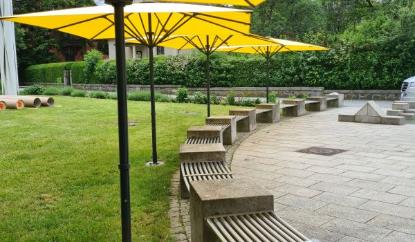 - Die aufgestellten Schirme spenden Schatten, falls es doch einmal zu heiß wird.