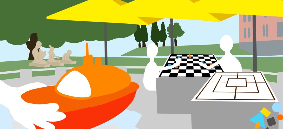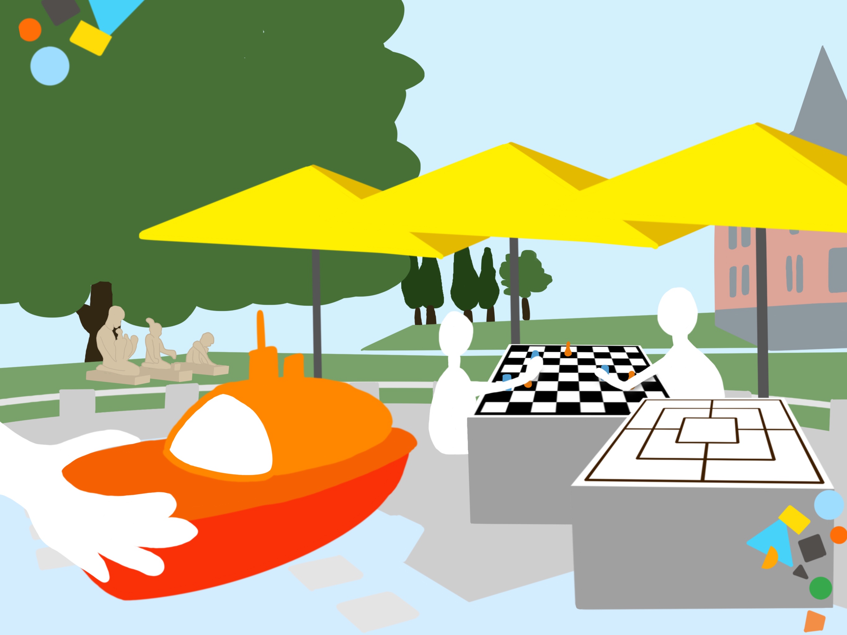 - Hier könnt ihr sogar Mühle und Schach spielen: auf den Bänken finden sich die Spiele; bringt einfach eure Figuren und Spielsteine mit.