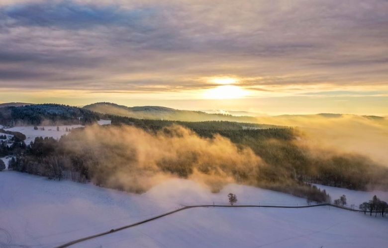 Erlebe die glitzernde Schneelandschaft und die Weitsichten über den Frankenwald bis hin zum Rennsteig bei einer Winterwanderung zwischen Neufang und der Wiefelsburg.