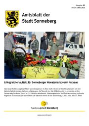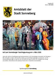Über den Amtlichen Teil mit gesetzlich vorgeschriebenen Inhalten hinaus erfahren Sie wichtige kommunale Termine im Amtsblatt der Stadt Sonneberg. Im öffentlichen Teil werden Veranstaltungen der Stadt Sonneberg und angeschlossener Einrichtungen in Text und Bild aufgearbeitet.