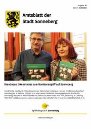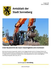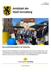 - Das Amtsblatt der Stadt Sonneberg wird ab Januar 2025 als kostenfreie elektronische Ausgabe auf der Internetseite der Stadt Sonneberg herausgegeben (siehe unterer Downloadbereich). Das hier eingestellte elektronische PDF-Dokument ist die amtlich verkündete Fassung.