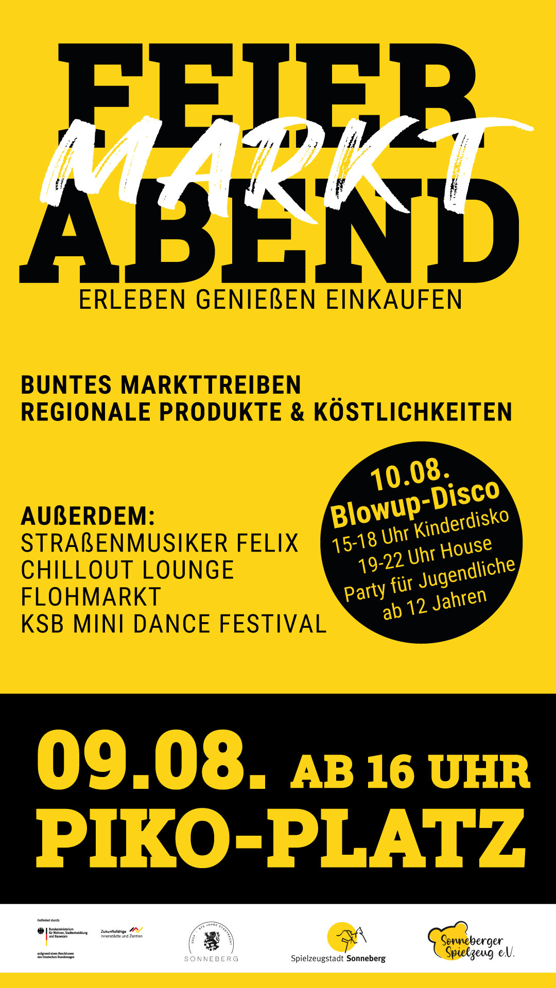 Nach dem ersten Feierabendmarkt mit der Fête de la Musique am 21. Juni 2024, kommt nun am 9. August der zweite Feierabendmarkt: Er wird ab 16:00 Uhr auf dem PIKO-Platz stattfinden. Neben verschiedenen Händlern und Versorgungsständen läuft parallel das Mini Dance Festival des Kreissportbundes und der Kreissportjugend, kommt Straßenkünstler Felix und wird ein Flohmarkt stattfinden.